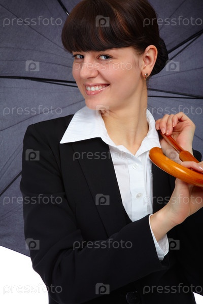 Портрет улыбающейся девушки с черным зонтиком