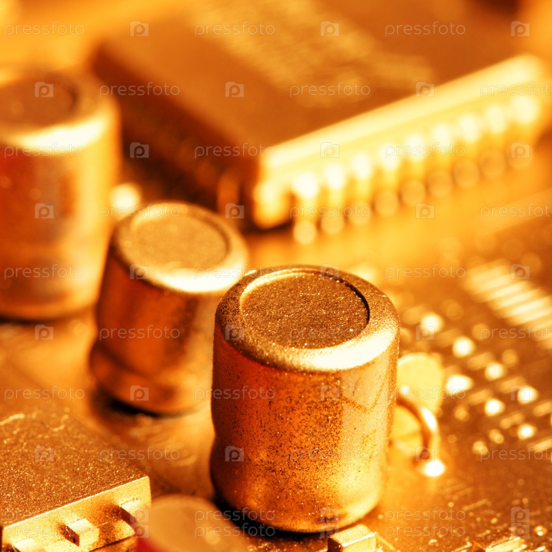 Печатная плата крупным планом. Золотой оттенок