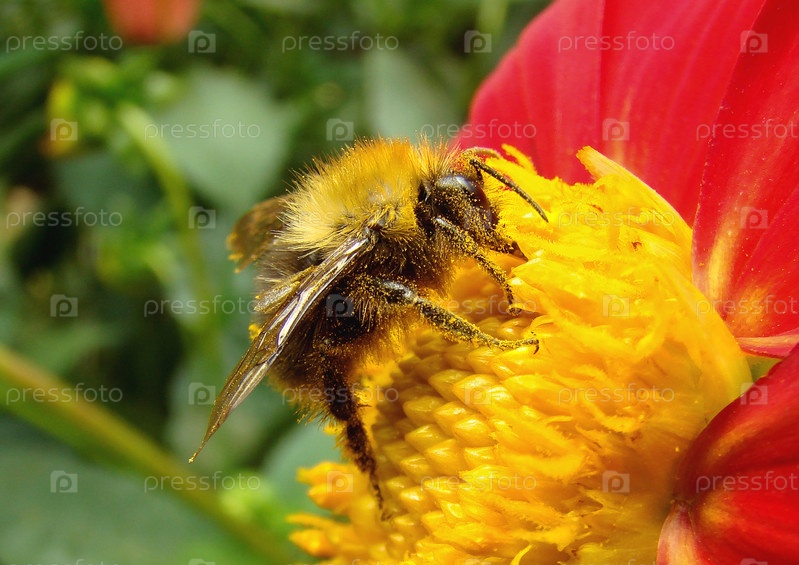 Шмель крупным планом на цветке