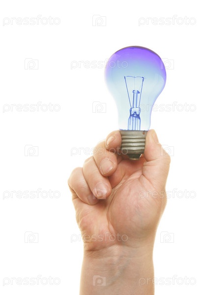 Лампа в руке на белом фоне