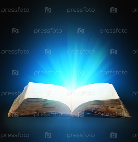 Открытая волшебная книга с магическим светом для Вашего дизайна