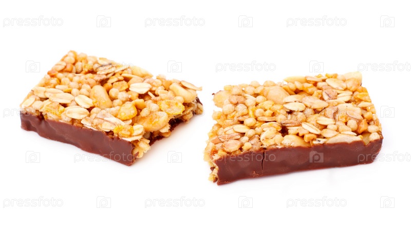 Мюсли в шоколаде на белом фоне