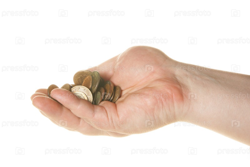 Монеты в руке на белом фоне