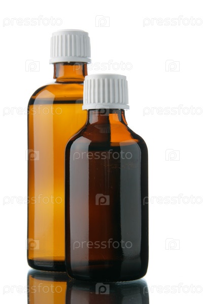 Две бутылочки с лекарством на белом фоне