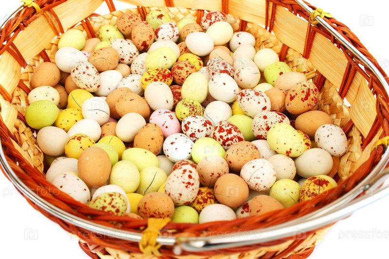 Раскрашенные пасхальные яйца в корзине крупным планом