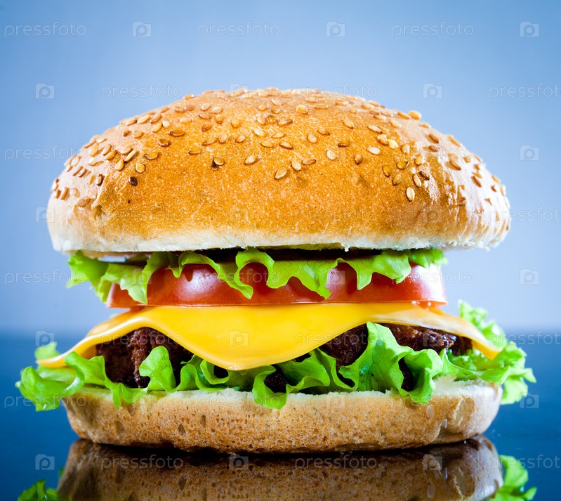 Гамбургер на синем фоне