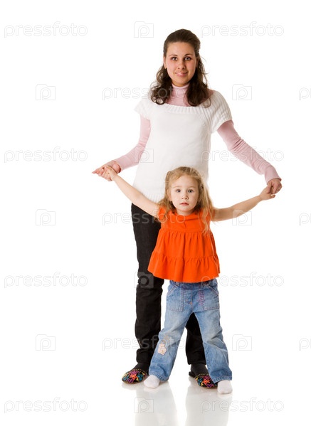 Мать и дочь на белом фоне