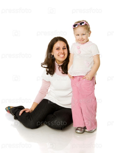 Мать и дочь на белом фоне