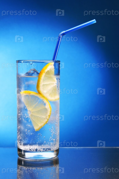 Коктейль с кубиками льда и ломтиком лимона