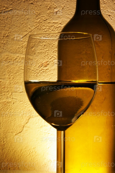 Белое вино на желтом фоне