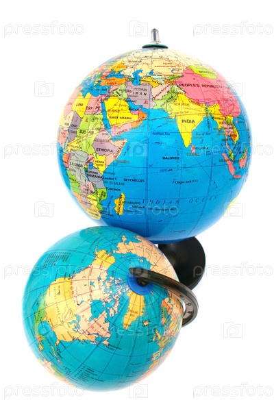 Два глобуса, изолированы на белом фоне