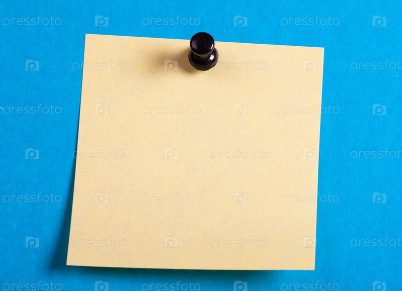 Желтый лист для записи на синем фоне