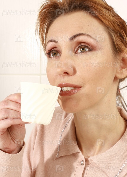 Девушка пьет кофе