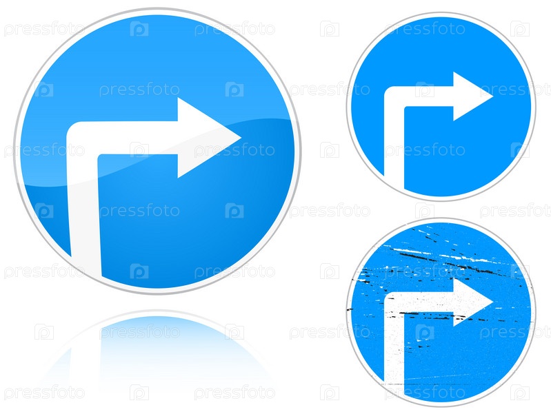 Три варианта знака "Поворот направо", изолированные на белом фоне