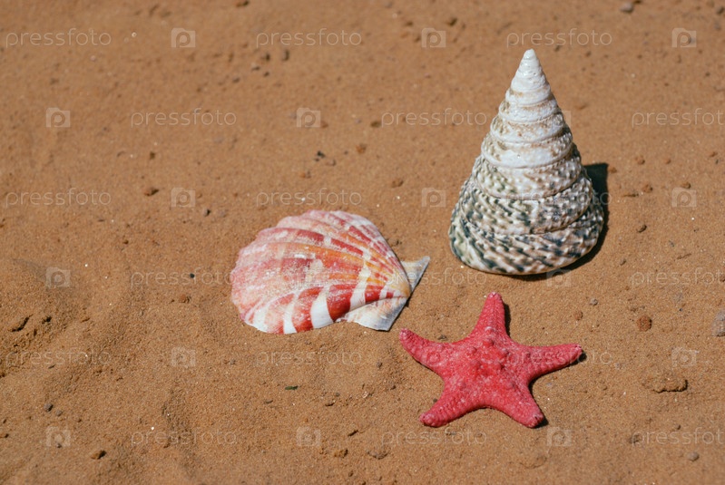 Ракушки и морская звезда на песке