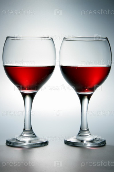 Бокалы с вином на сером фоне