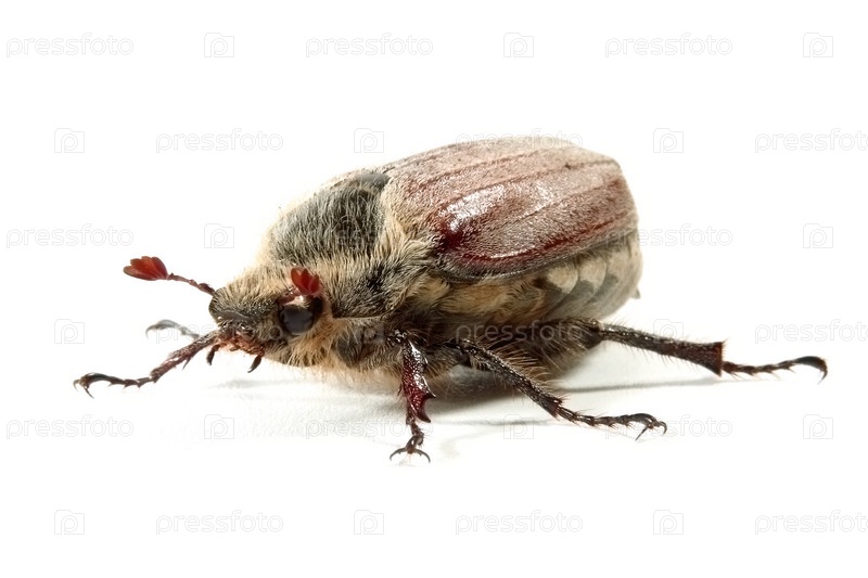 Майский жук на белом фоне
