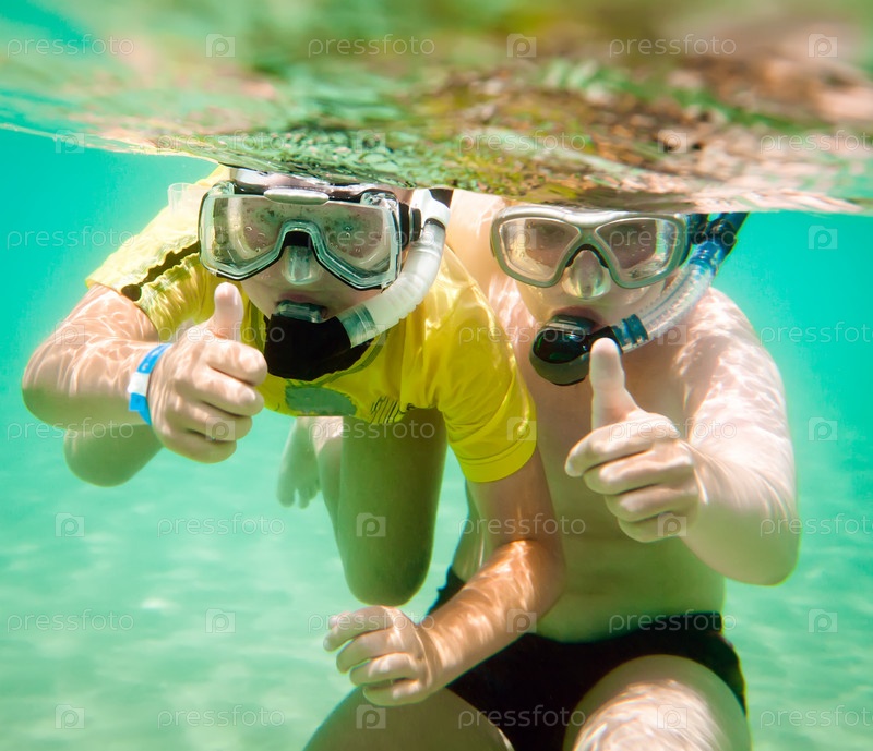 Двое детей под водой в масках