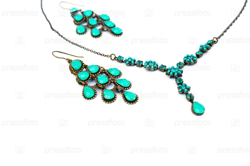 Набор ювелирных украшений на белом фоне