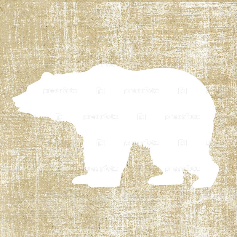 Белый силуэт медведя на старой ткани
