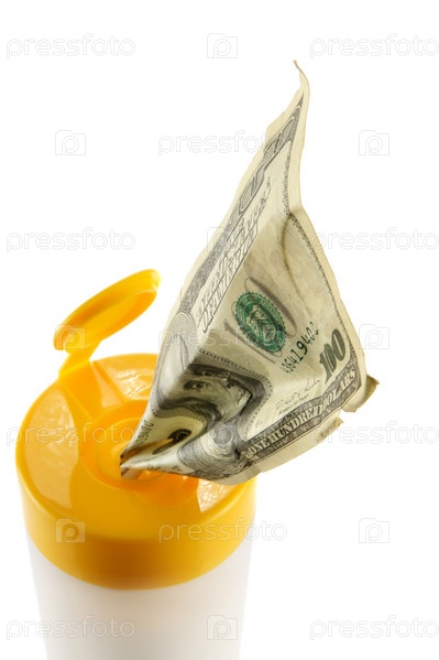 Доллары в пластиковой упаковке для салфеток на белом фоне