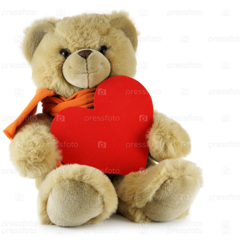 Медвежонок с красным сердцем на белом фоне