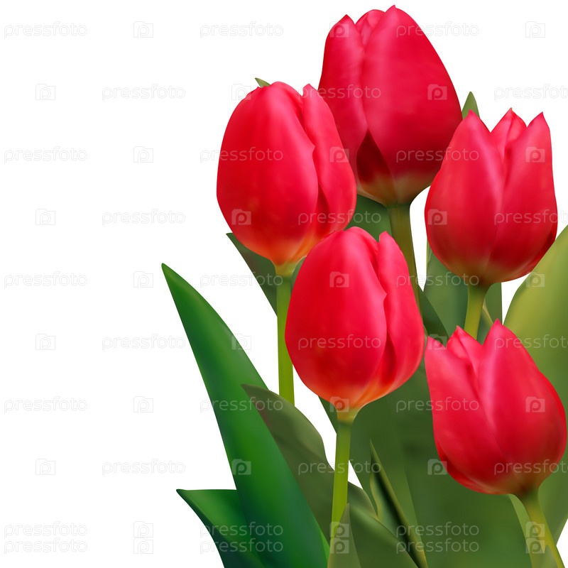 Букет красных тюльпанов на белом фоне