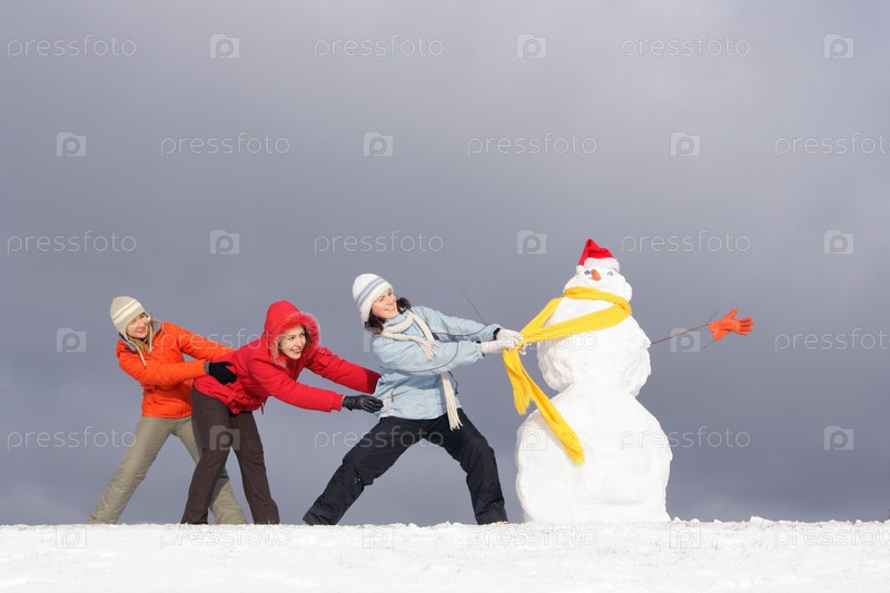 Три девушки и снеговик