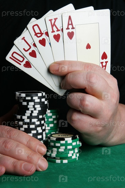Руки игрока с картами. Флэш