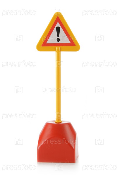 Игрушечный дорожный знак на белом фоне
