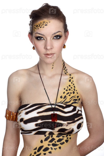 Девушка-кошка, боди-арт