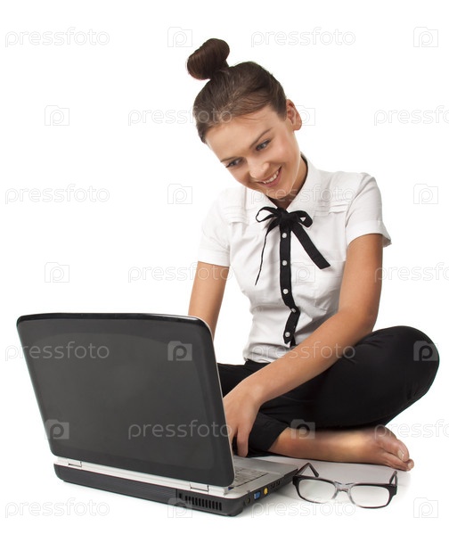 Девушка работает на ноутбуке