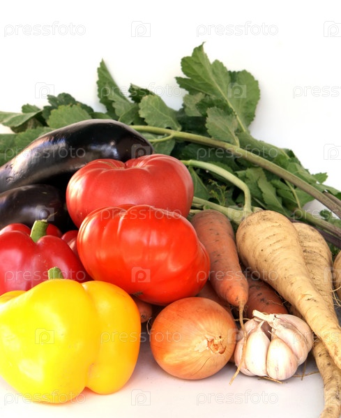 Зрелые овощи на белом фоне