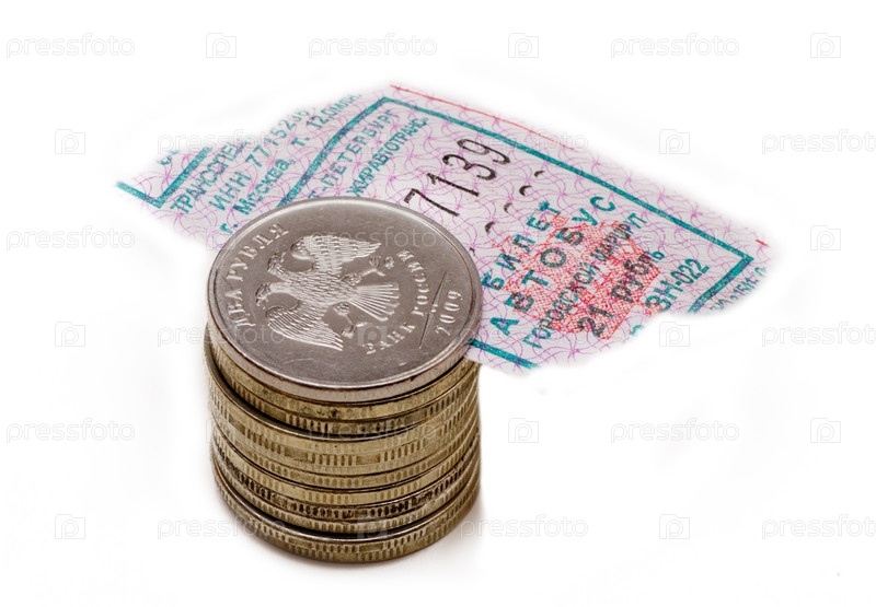 Стопка монет и билет на автобус