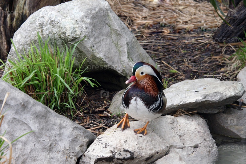 Дикая водоплавающая птица на камне