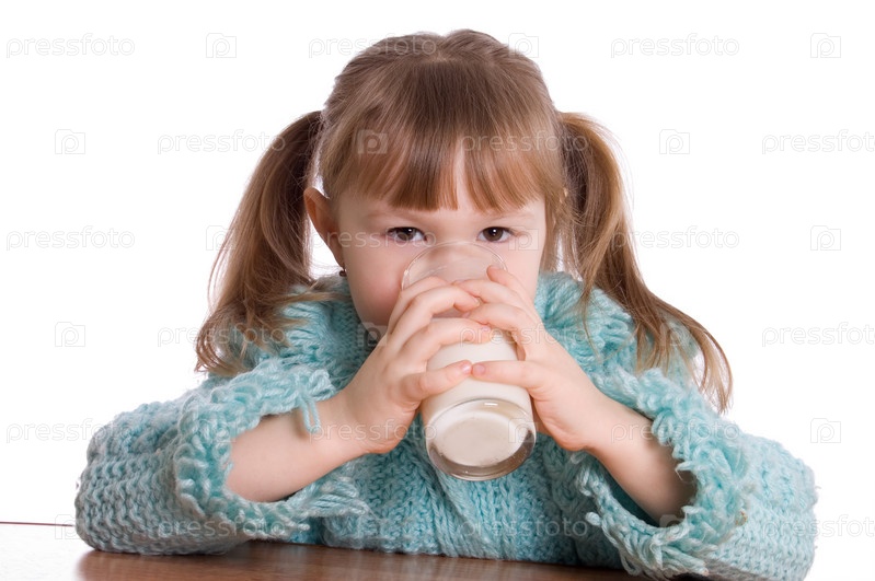 Девочка пьет молоко