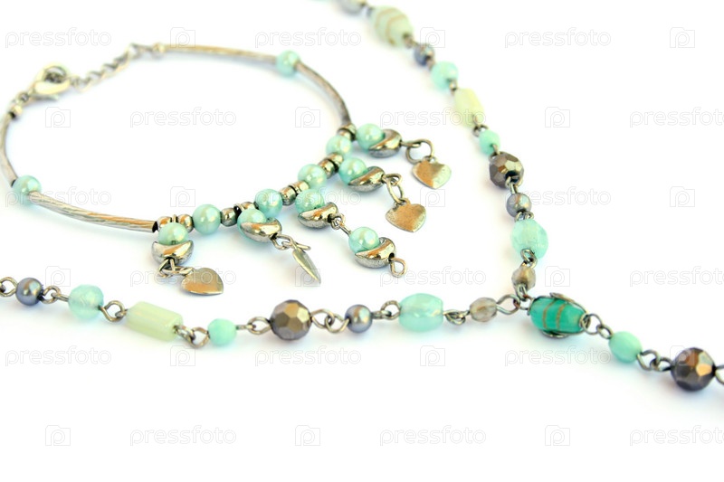 Женские ожерелье и браслет на белом фоне