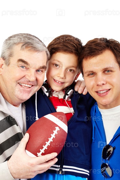 Сын, отец и дедушка на белом фоне