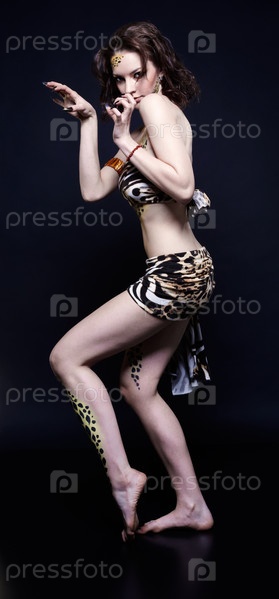 Девушка-кошка, боди-арт