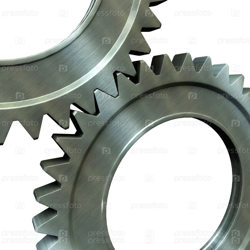 Пара стальных шестеренок на белом фоне