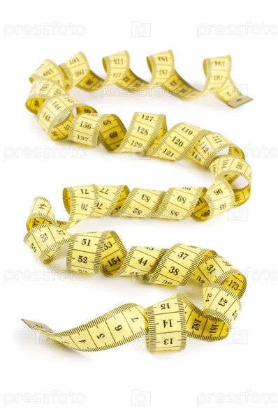 Желтая сантиметровая лента на белом фоне