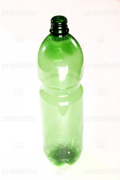 Зеленая пластиковая бутылка на белом фоне