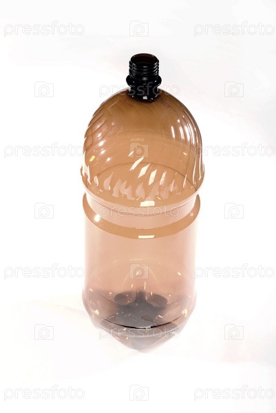 Коричневая пластиковая бутылка на белом фоне