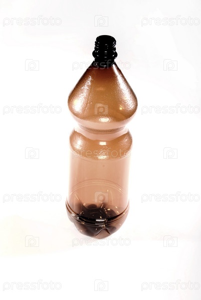 Коричневая пластиковая бутылка на белом фоне