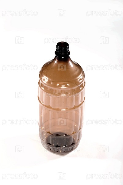 Коричневая пластиковая бутылка на белом фоне