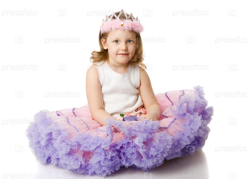 Маленькая девочка в диадеме и платье, на белом фоне