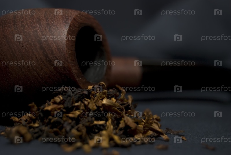 Курительная трубка и табак на темном фоне