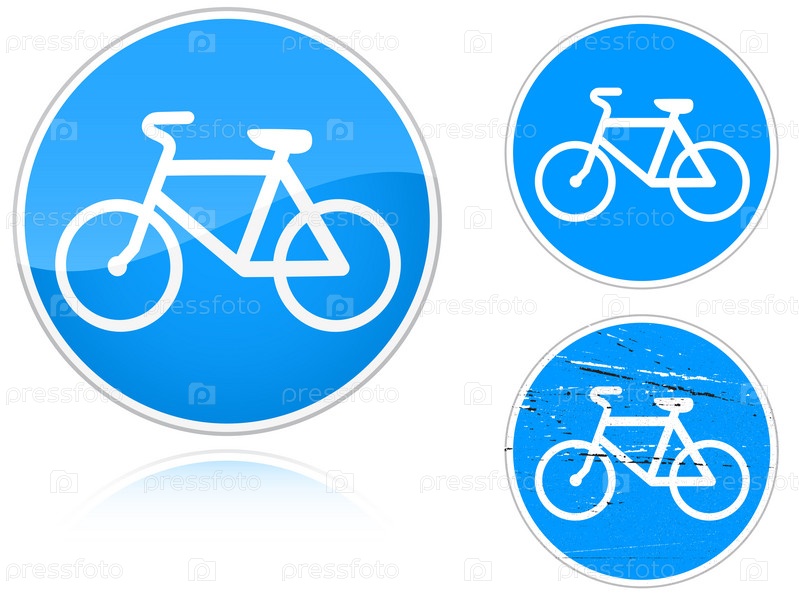 Дорожные знаки с велосипедами крупным планом на белом фоне