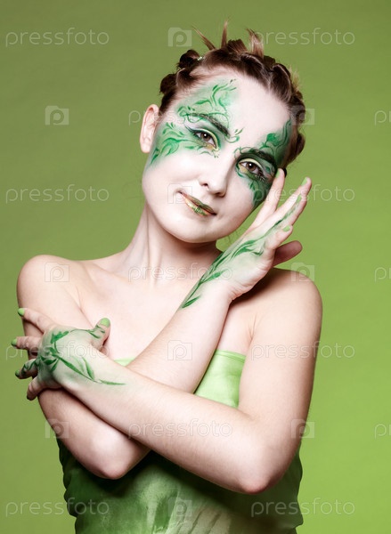 Портрет красивой девушки, демонстрирующей эльфийский боди-арт