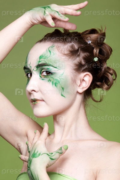 Портрет красивой девушки, демонстрирующей эльфийский боди-арт